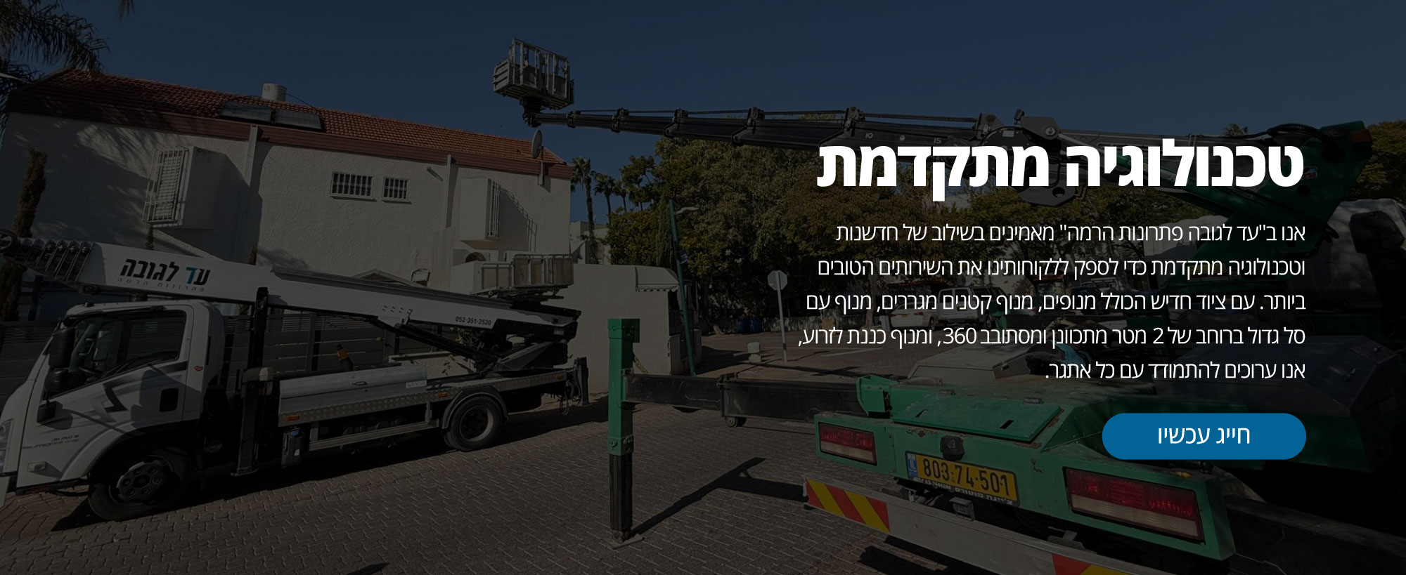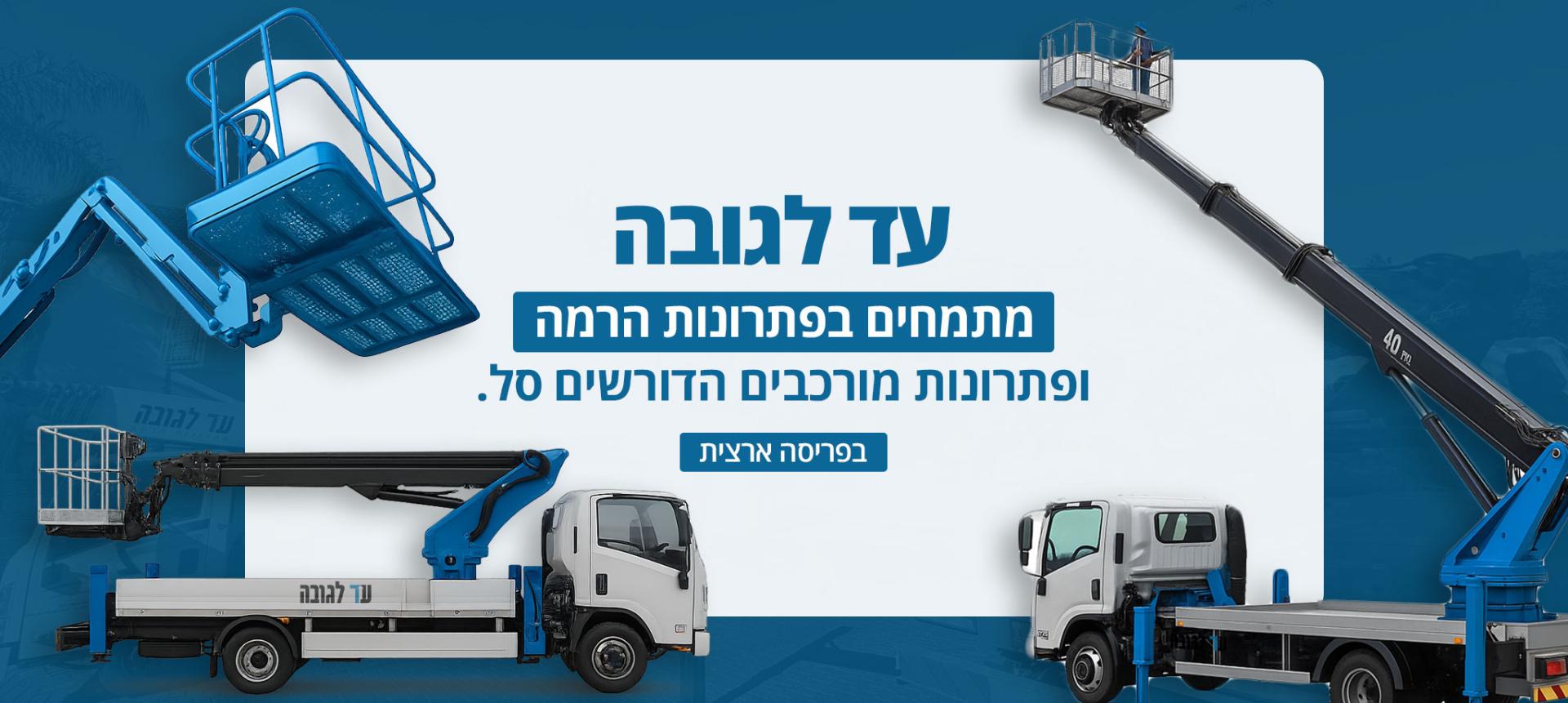 ברוכים הבאים ל"עד לגובה פתרונות הרמה" החברה המובילה בישראל לשירותי מנופים מקצועיים ומתקדמים. מאז הקמתנו בשנת 2019, אנו מתמחים במתן שירותי הרמה וסל, בטוחים וחדשניים, המותאמים לצורכי לקוחותינו בכל רחבי הארץ. עם ציוד חדיש ומתקדם הכולל מנופים, מנופי סל, מנוף קטנים, ומנוף כננת לזרוע, אנו מספקים מענה לכל סוגי הפרויקטים – מקטן ועד גדול. שירותינו כוללים גם זימון מיידי עד קומה 23, תוך התחייבות לאיכות ומקצועיות.